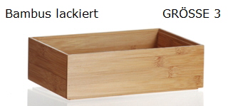 Stabiles, lackiertes Bambusholz in hochwertiger Designeroptik. Erhältlich in vier Größen Die Systemboxen sind stapelbar und können teilweise miteinander kombiniert werden.